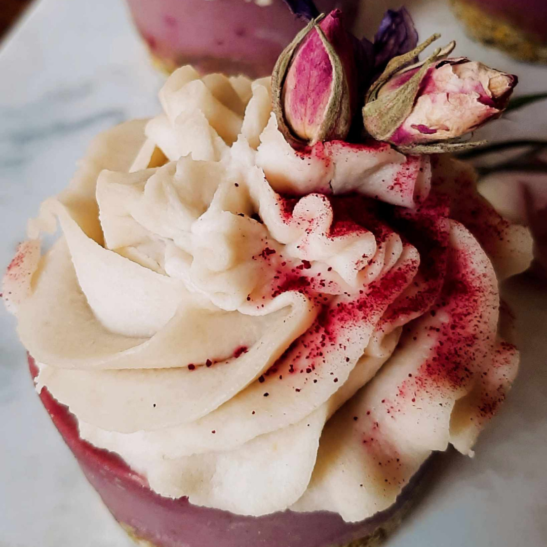 ingrédients : pistaches, noix de cajou, noix de coco râpée, citron, fraise, hibiscus, huile de coco, poudre de betterave